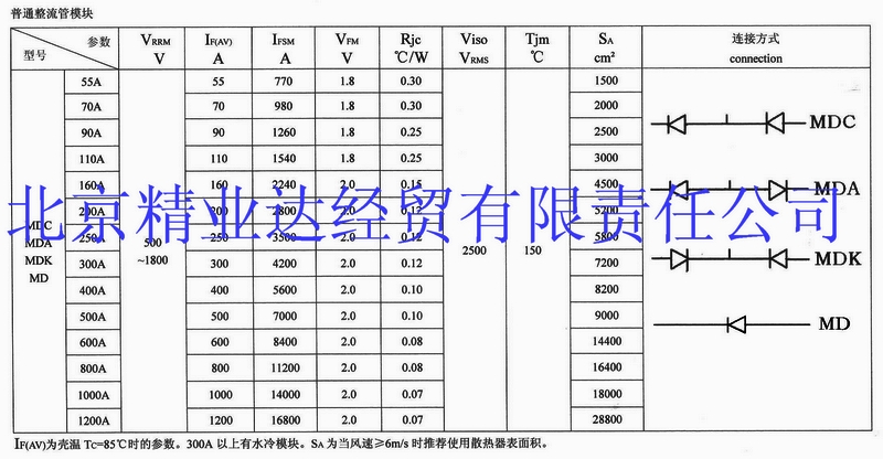 | 整流管模块 >> 普通整流管模块 >> MDC55A1600V